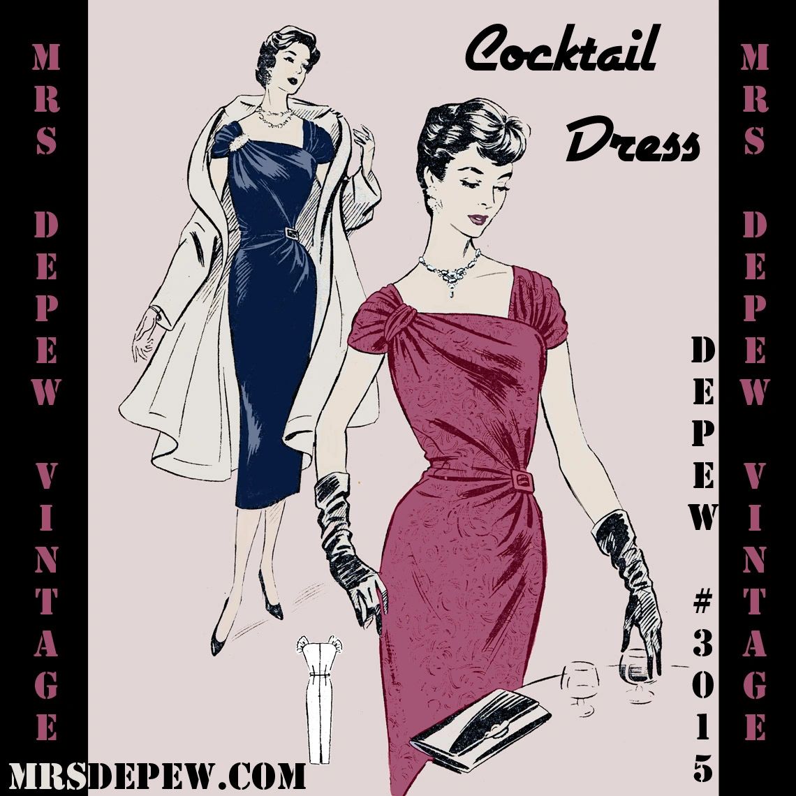 Vintage Sewing Pattern 1950 S French Cocktail Party Dress Digital Reproduction Depew 3015 Instant Download